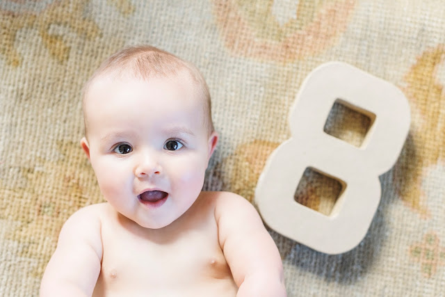 Not much else to report, Campbell Bambell. Between you, your daddy, brother and sister being sick and life moving at record speed, I'm just thankful I found the time to take your eight month pictures and document this month! Despite the circumstances, you still shine bright.